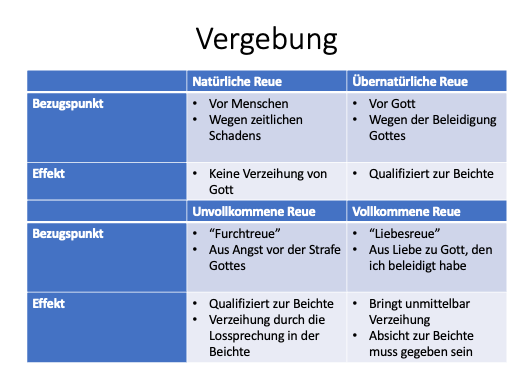 Um die Vergebung zu erlangen, ist zunächst einmal Buße bzw. Reue nötig. Es gibt hier jedoch verschiedene Kategorien von Reue: